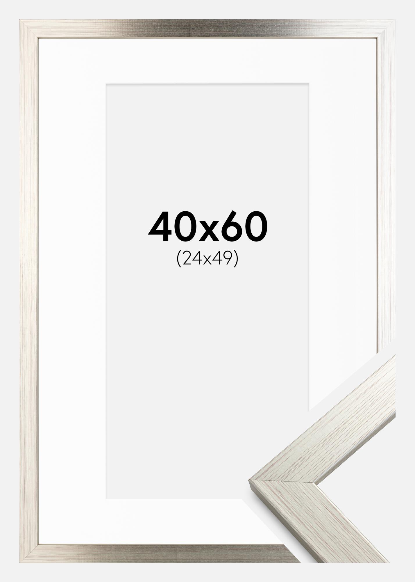 Moldura Silver Wood 40x60 cm - Passe-partout Branco 25x50 cm