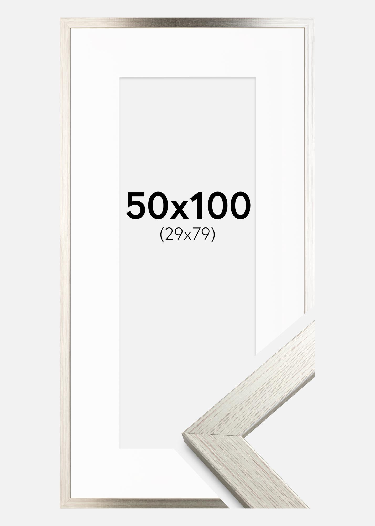 Moldura Silver Wood 50x100 cm - Passe-partout Branco 30x80 cm