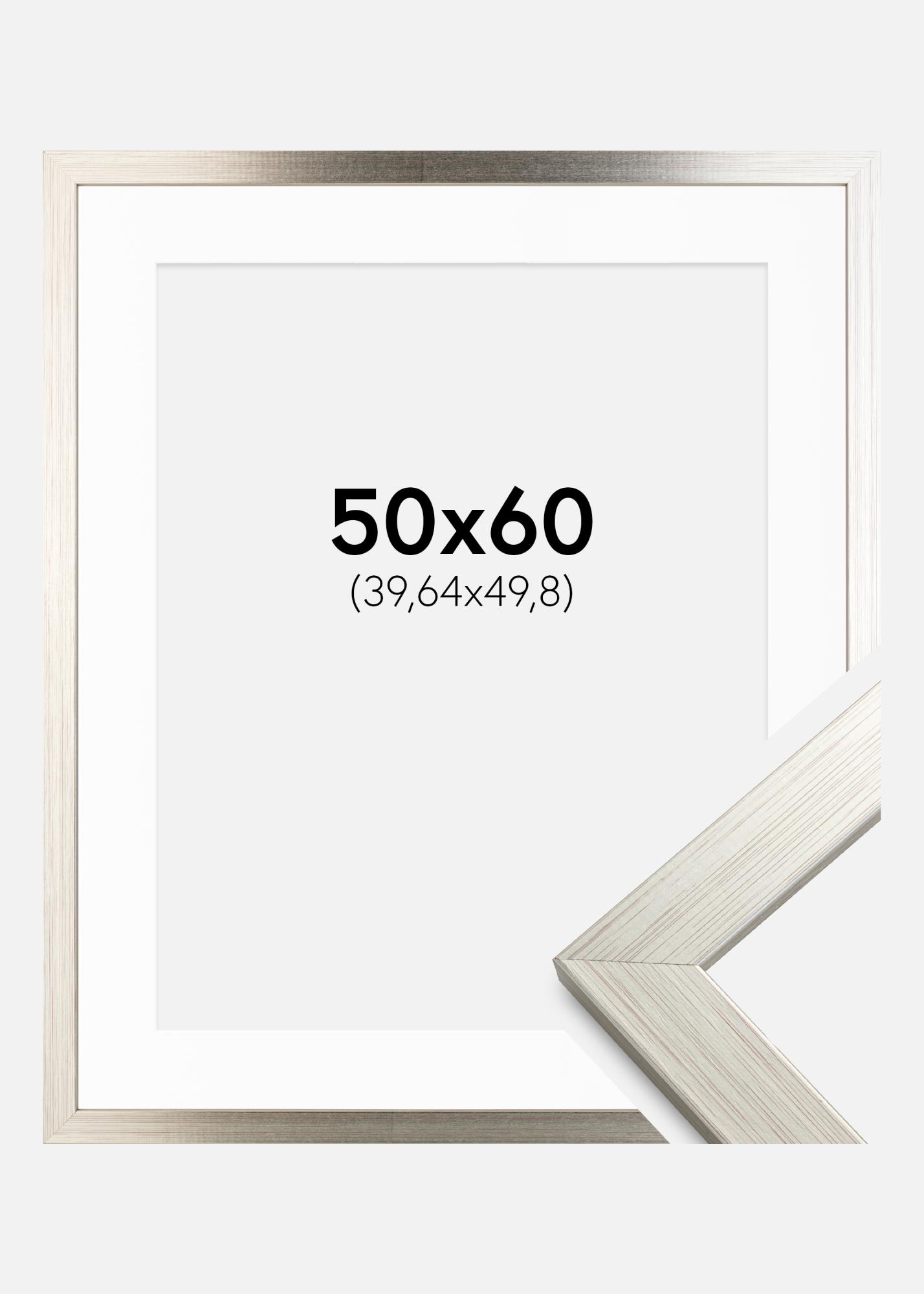 Moldura Silver Wood 50x60 cm - Passe-partout Branco 16x20 inches