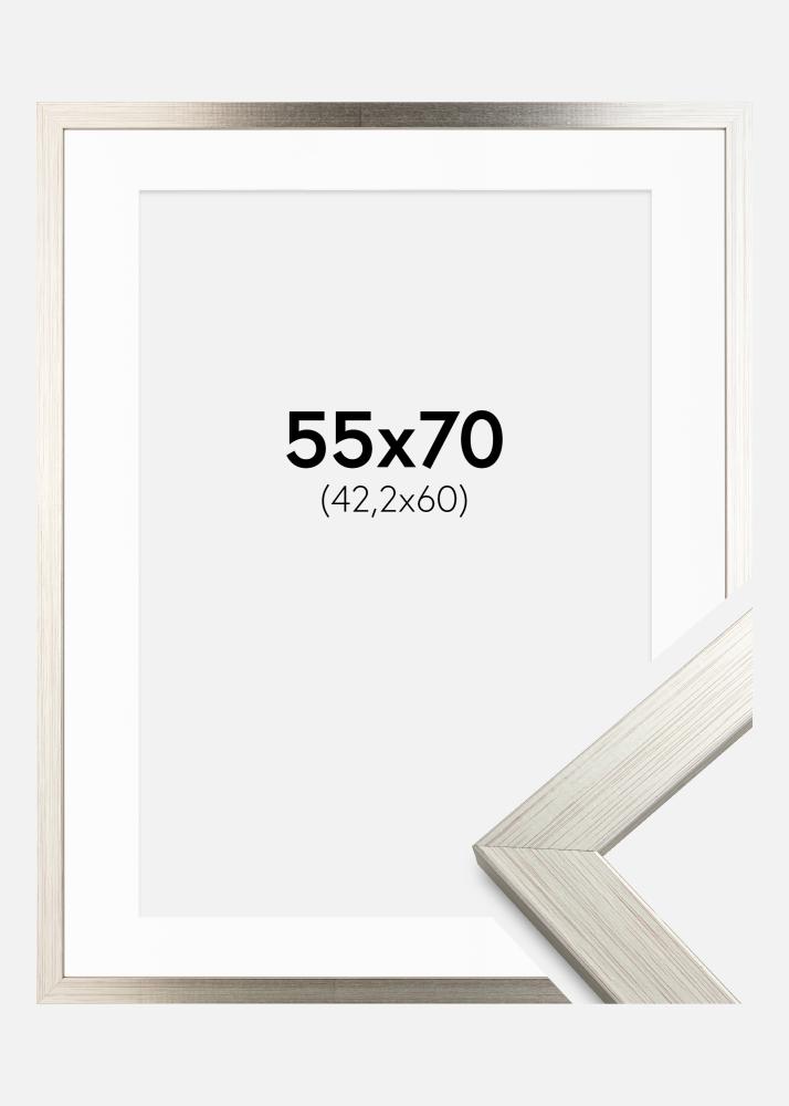 Moldura Silver Wood 55x70 cm - Passe-partout Branco 43,2x61 cm (A2+)
