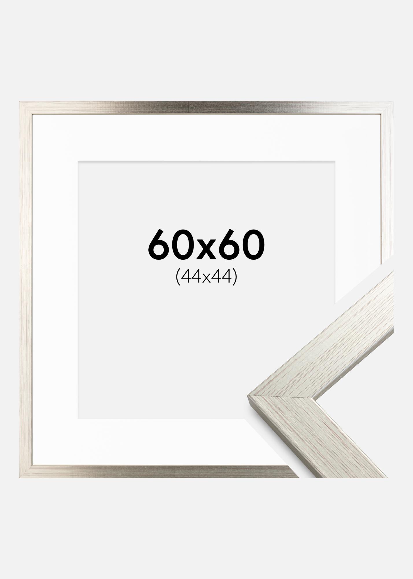Moldura Silver Wood 60x60 cm - Passe-partout Branco 45x45 cm