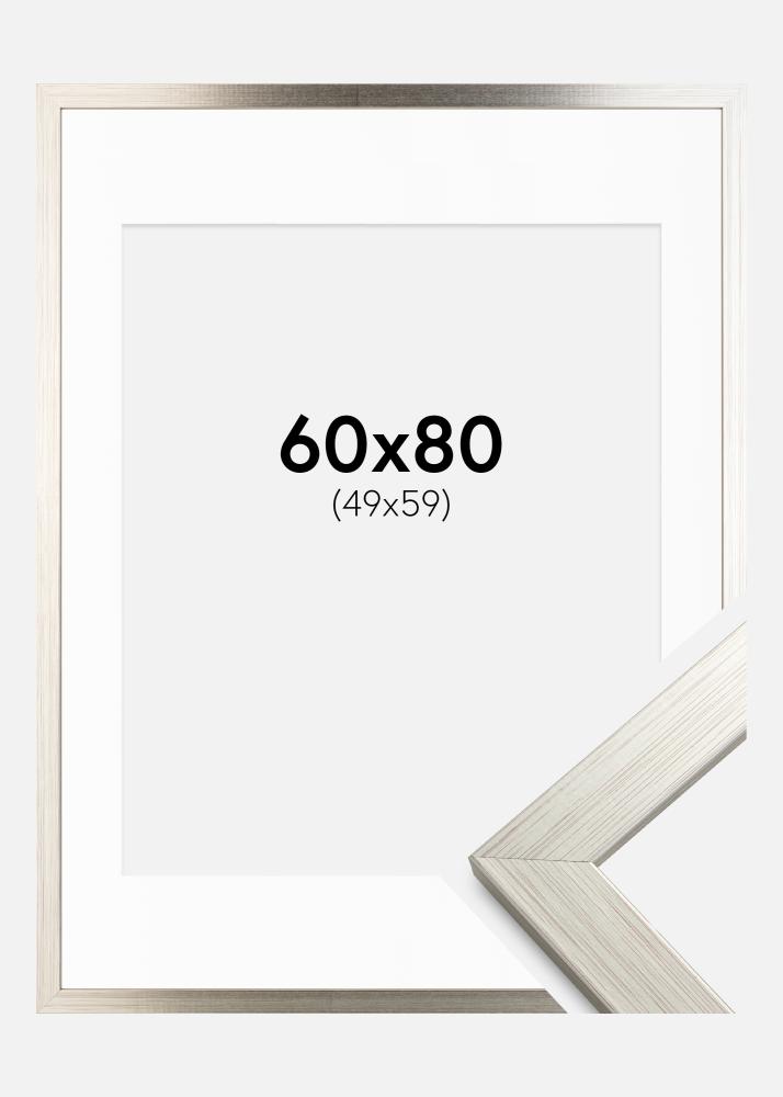 Moldura Silver Wood 60x80 cm - Passe-partout Branco 50x60 cm