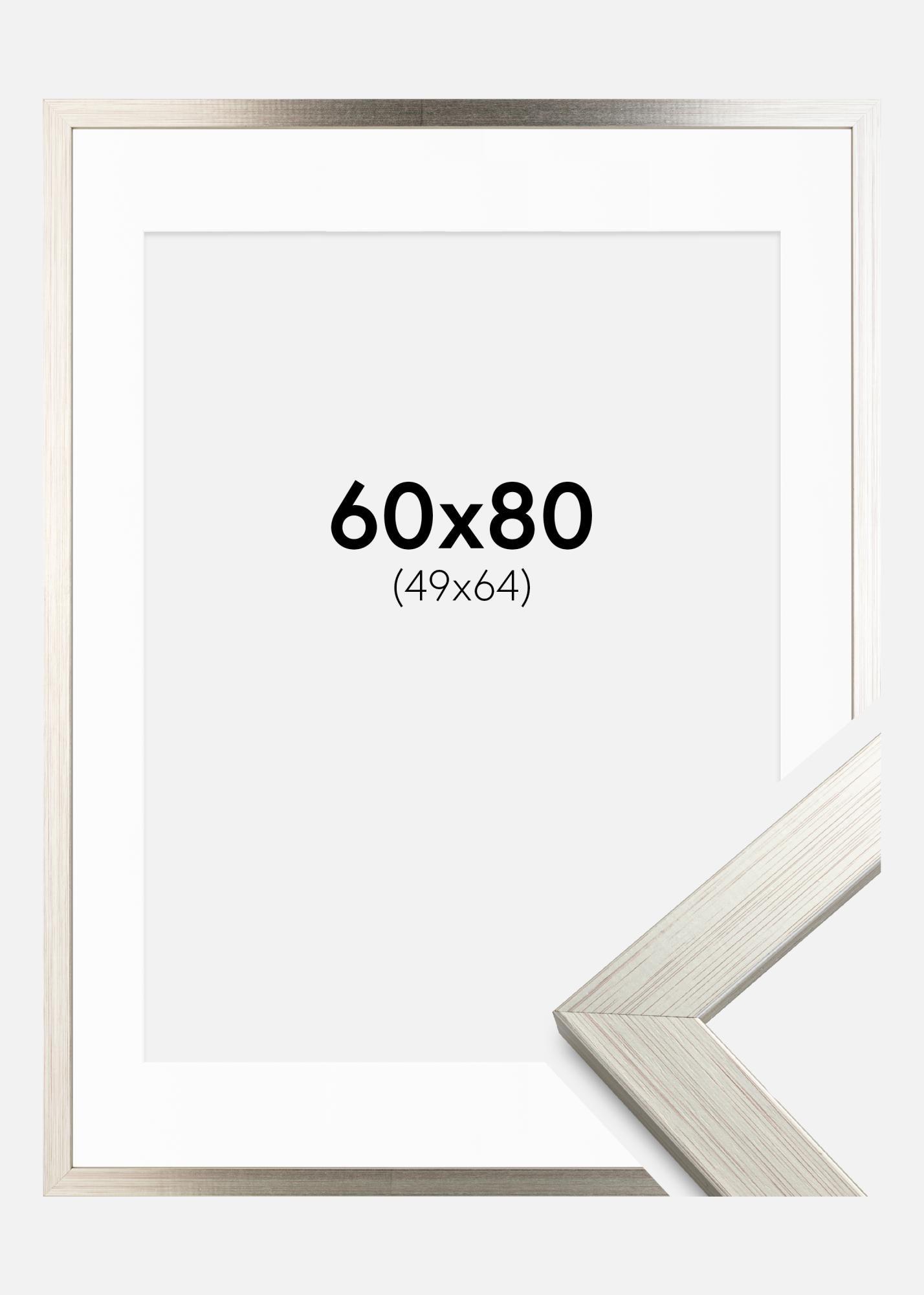 Moldura Silver Wood 60x80 cm - Passe-partout Branco 50x65 cm