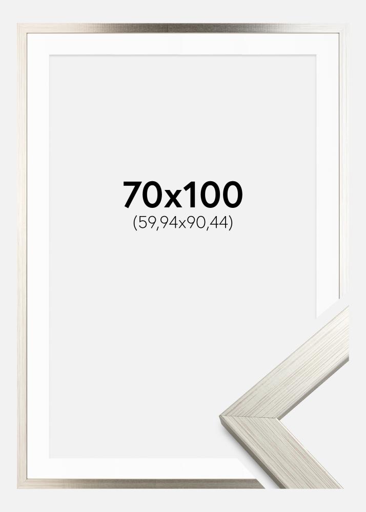 Moldura Silver Wood 70x100 cm - Passe-partout Branco 24x36 inches
