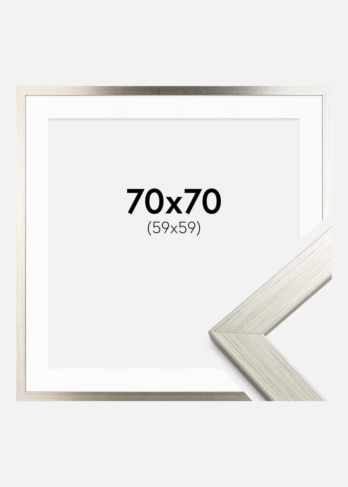 Moldura Silver Wood 70x70 cm - Passe-partout Branco 60x60 cm