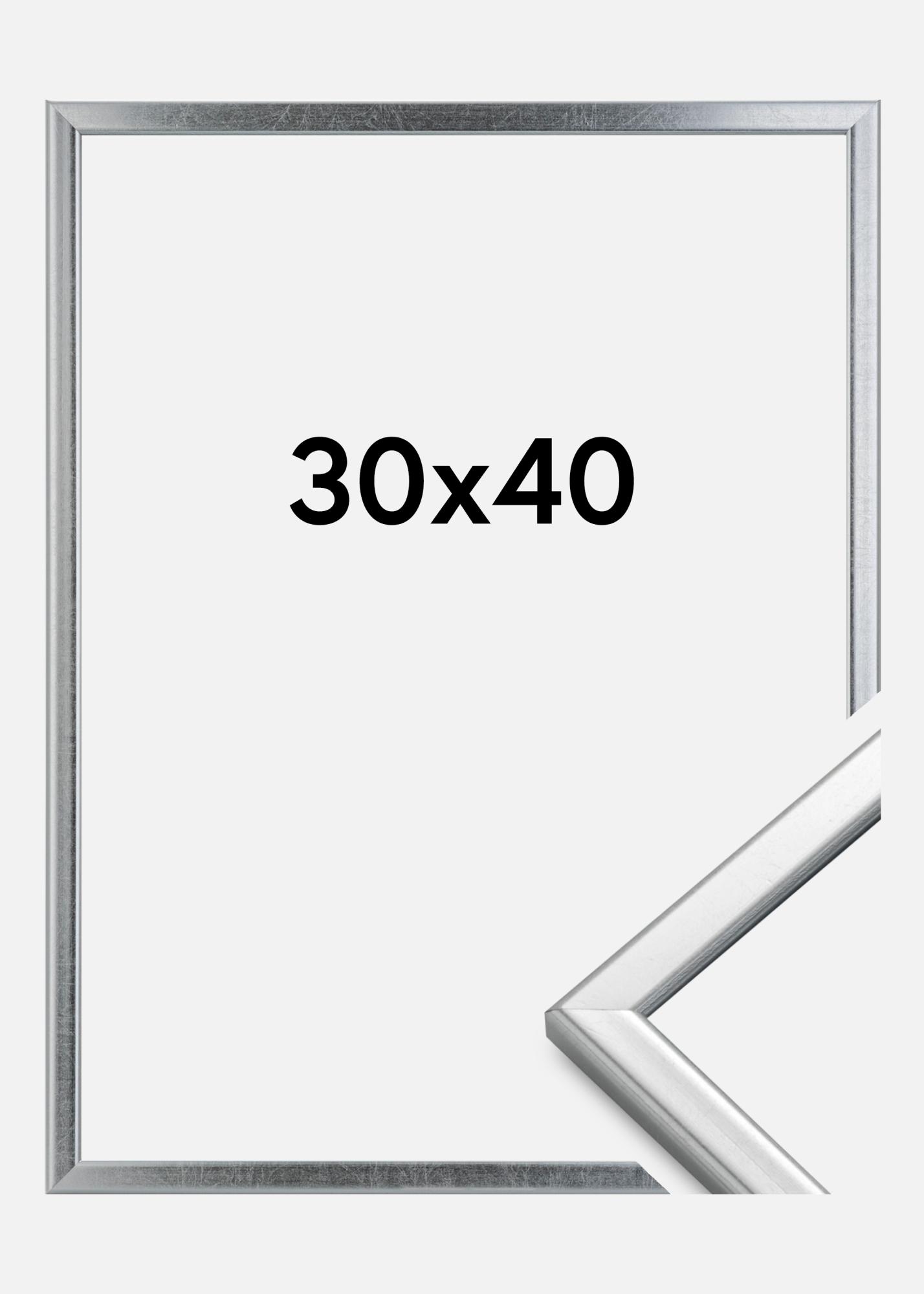 Moldura Slim Mate Vidro antirreflexo Prateado 30x40 cm