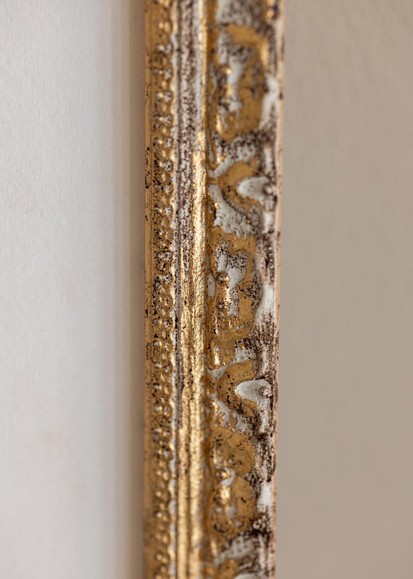 Elegante moldura retro de alta qualidade com um design exclusivo em prata e ouro, fabricada na Itália. Dá um toque extra às suas melhores fotos, especialmente quando combinada com um passe-partout (não incluído).