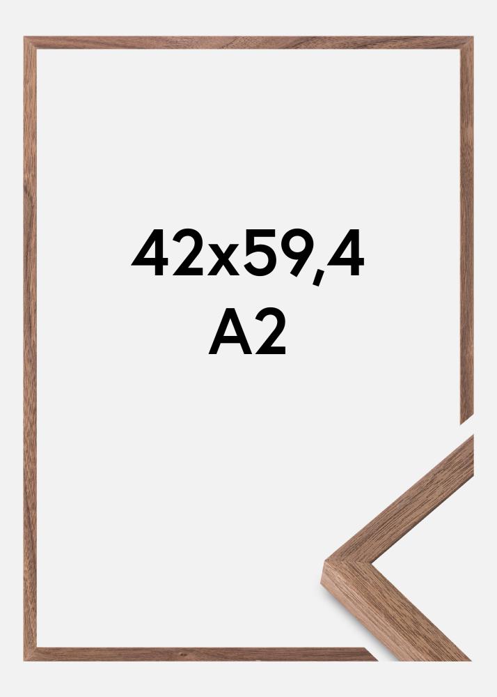 Com as medidas de 42 x 59,4 cm (A2), esta moldura encaixa perfeitamente em tamanhos padrão de arte e cartazes. O design discreto complementa diferentes estilos de decoração e permite que as suas imagens se destaquem. Escolha a nossa moldura de noz para uma solução atemporal e versátil para as suas paredes.