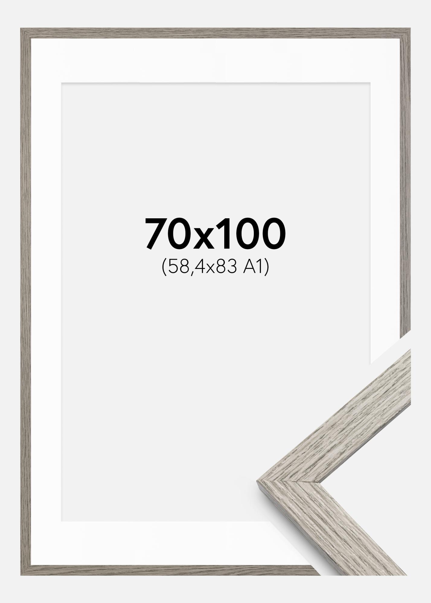 Uma moldura elegante em cinza com passepartout pode transformar qualquer ambiente ao proporcionar um enquadramento estiloso para suas imagens. Esta moldura, com as dimensões externas de 72x102 cm, é perfeita para destacar obras de arte ou fotografias no tamanho de 59,4x84 cm (A1). A superfície fosca e a cor cinza sutil conferem uma sensação moderna e sofisticada que se adapta à maioria dos estilos de decoração.