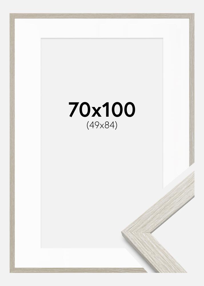 Transforme suas fotos em obras de arte com nossa moldura elegante em cinza, completa com um passepartout branco. Esta moldura é perfeita para fotos no tamanho 50x85 cm e oferece uma moldura estilizada que destaca o motivo de forma sofisticada. Com uma largura de 20 mm e profundidade de 14 mm, a moldura oferece uma sensação estável e robusta.