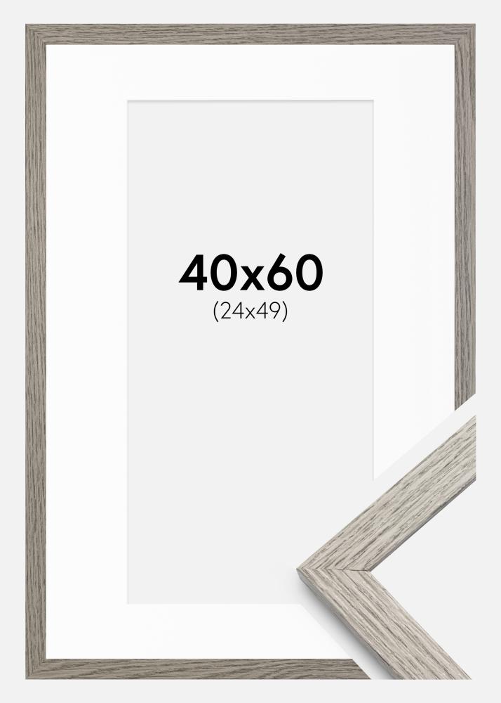 Moldura Stilren Cinza Carvalho 40x60 cm - passe-partout Branco 25x50 cm