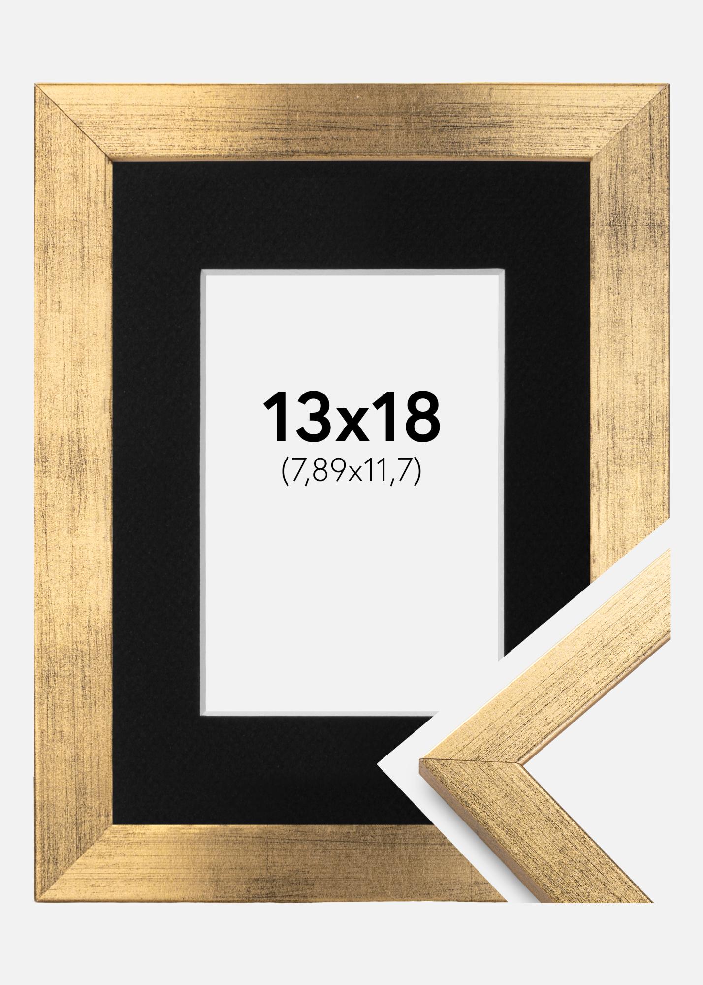 Moldura Stilren Dourado 13x18 cm - Passe-partout Preto 3,5x5 inches