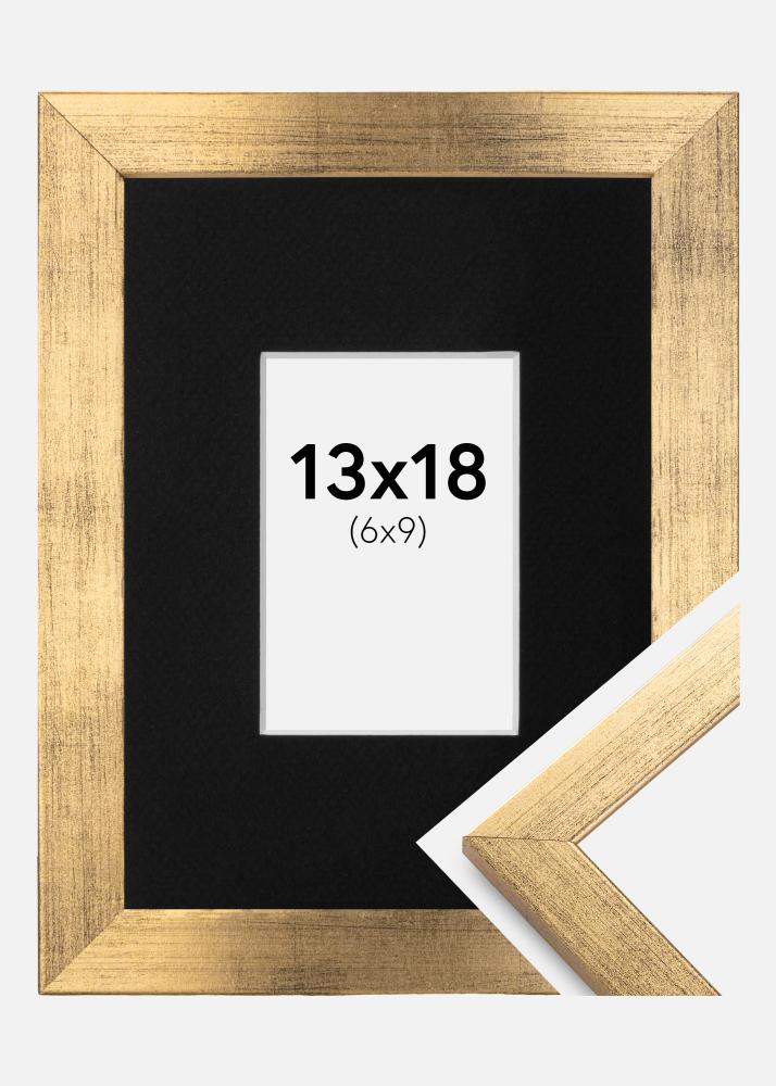 Moldura Stilren Dourado 13x18 cm - Passe-partout Preto 7x10 cm