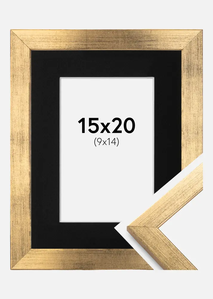 Moldura Stilren Dourado 15x20 cm - Passe-partout Preto 10x15 cm