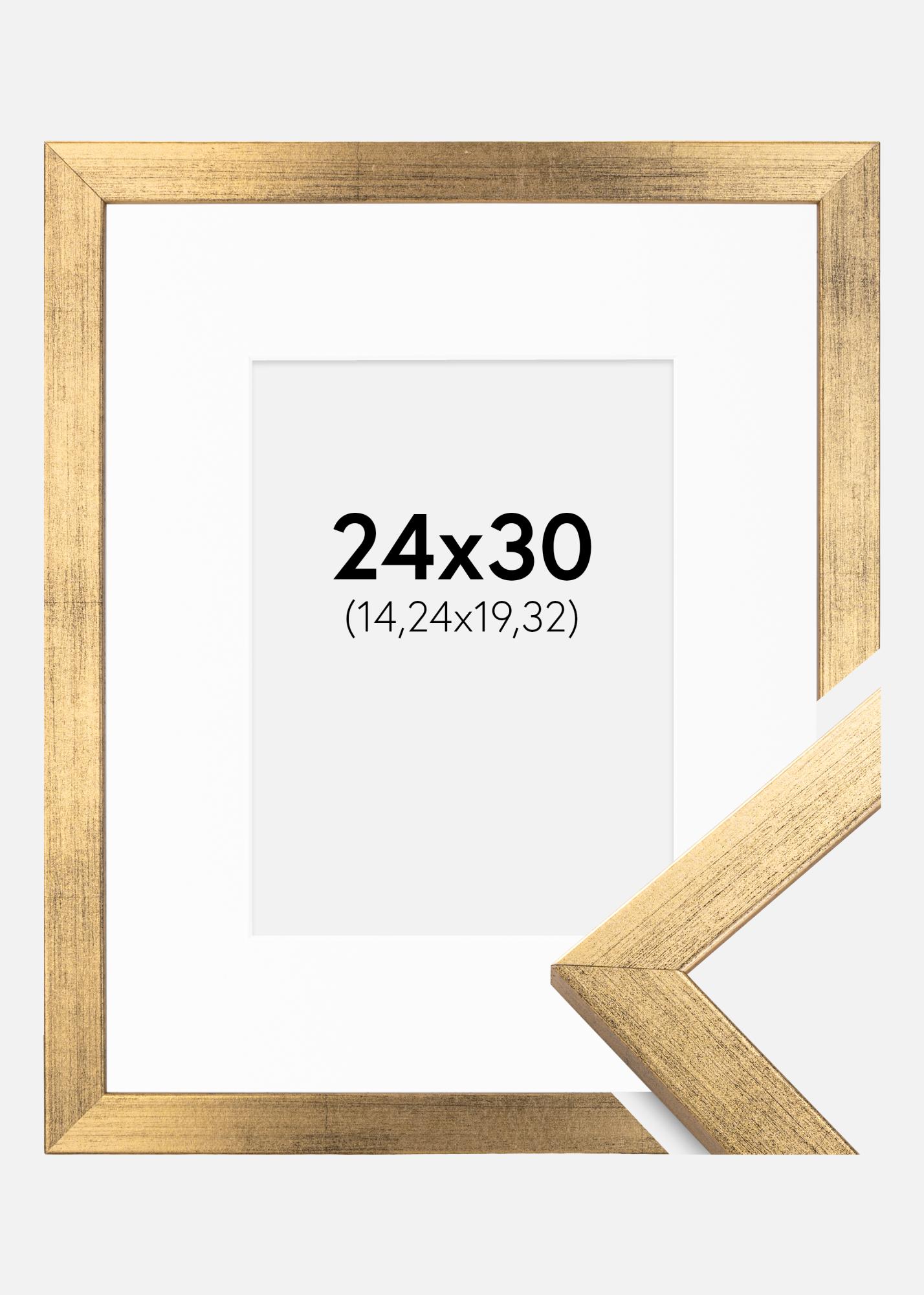 Moldura Stilren Dourado 24x30 cm - Passe-partout Branco 6x8 inches
