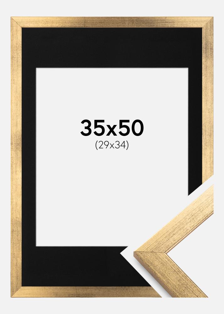 Moldura Stilren Dourado 35x50 cm - Passe-partout Preto 30x35 cm