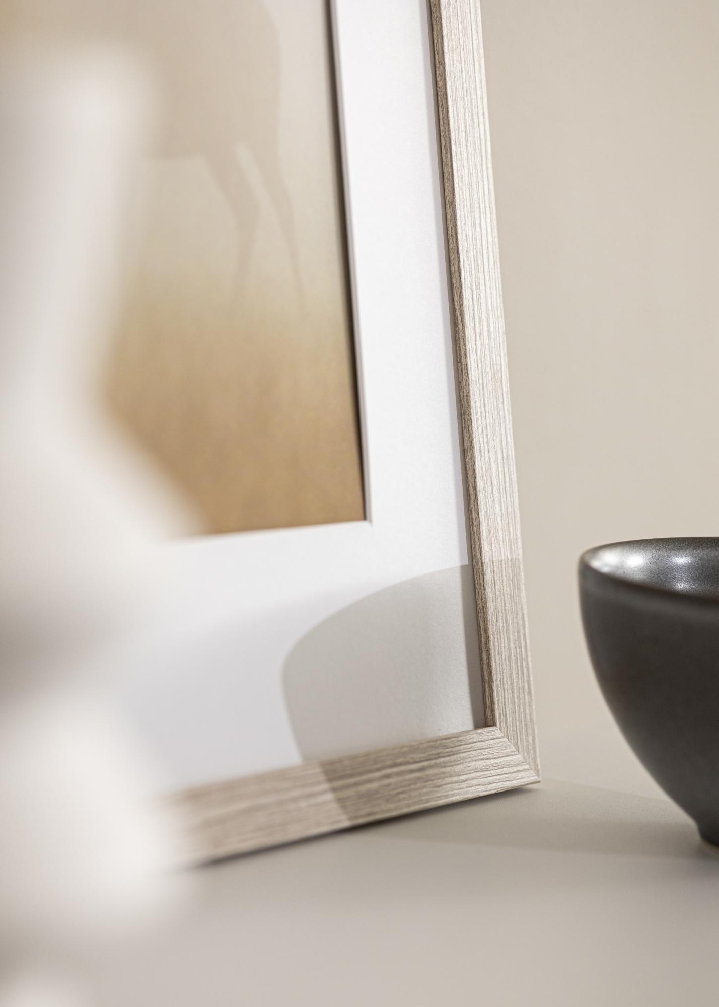 Esta é uma moldura elegante de qualidade feita de pinho com vidro autêntico. Esta moldura elegante tem um tom de carvalho greige que dá ao seu motivo uma moldura moderna. O elegante carvalho greige está disponível em vários tamanhos para que possa combinar várias molduras juntas, esta em particular é adequada para fotos no formato A4 (21x29,7 cm). Esta é uma moldura para quadros que pode pendurar tanto na vertical quanto na horizontal com o suporte de parede correspondente. A moldura tem uma profundidade de 20 mm e uma largura de 14 mm.