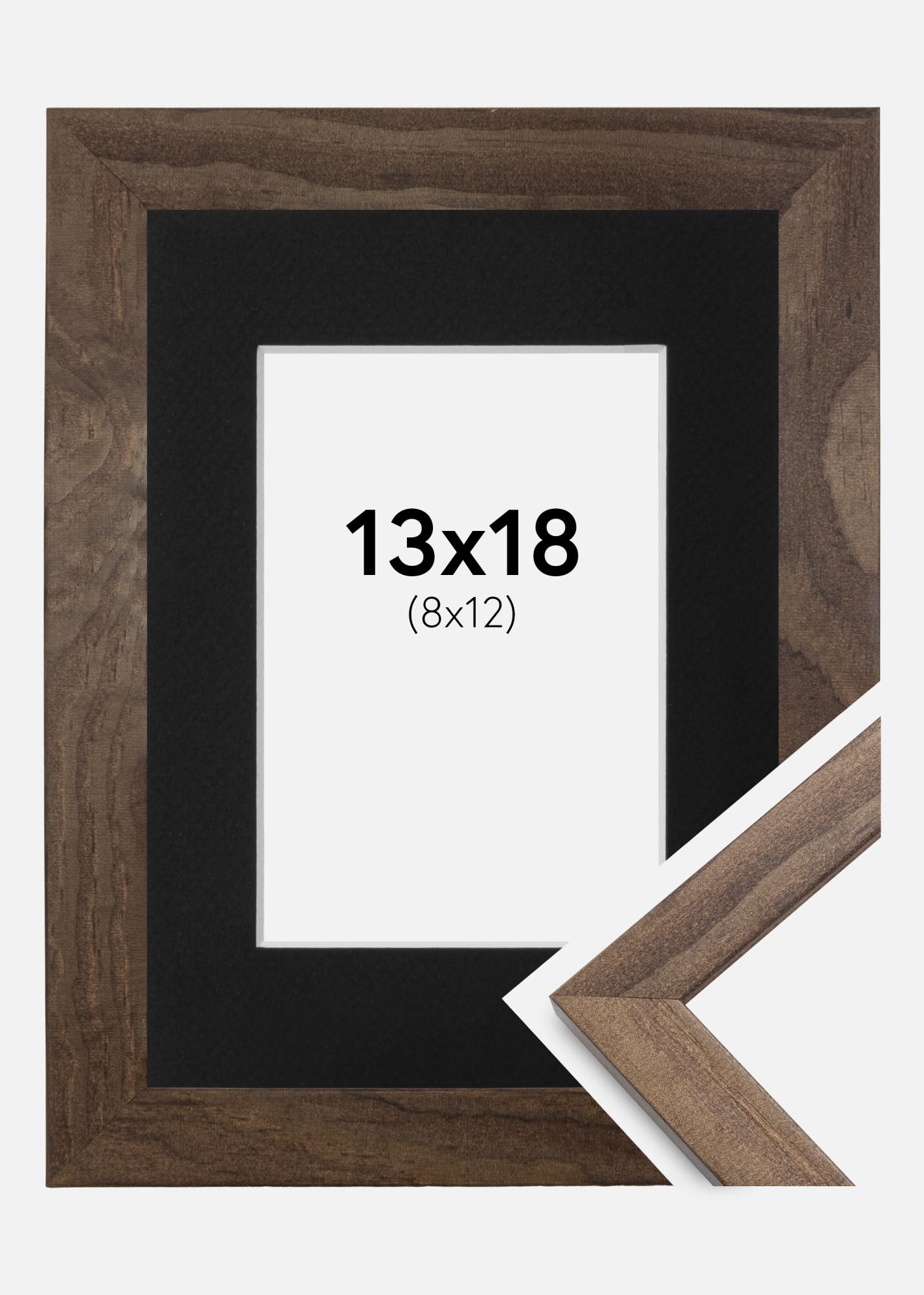 Moldura Stilren Nogueira 13x18 cm - Passe-partout Preto 9x13 cm