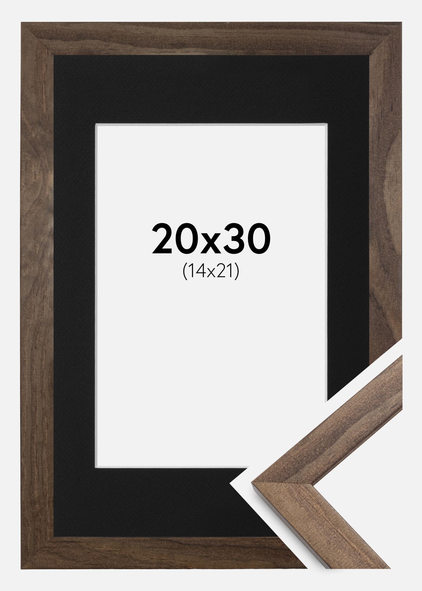 Moldura Stilren Nogueira 20x30 cm - Passe-partout Preto 15x22 cm