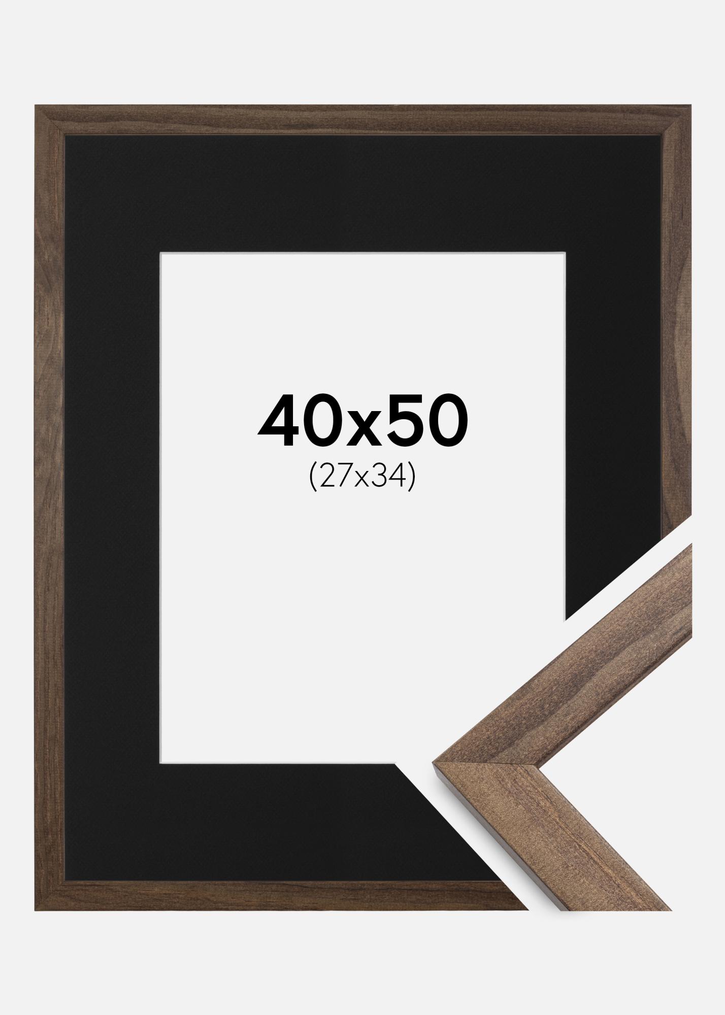 Moldura Stilren Nogueira 40x50 cm - Passe-partout Preto 28x35 cm