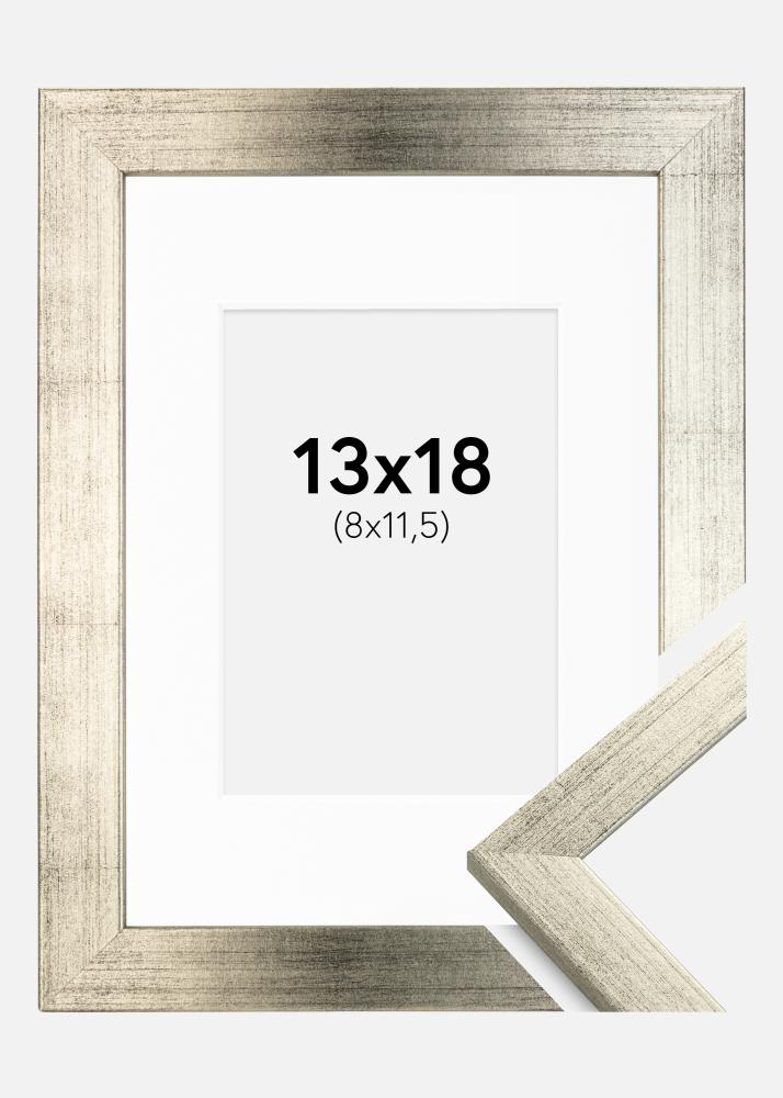 Moldura Stilren Prateado 13x18 cm - Passe-partout Branco 9x12 cm
