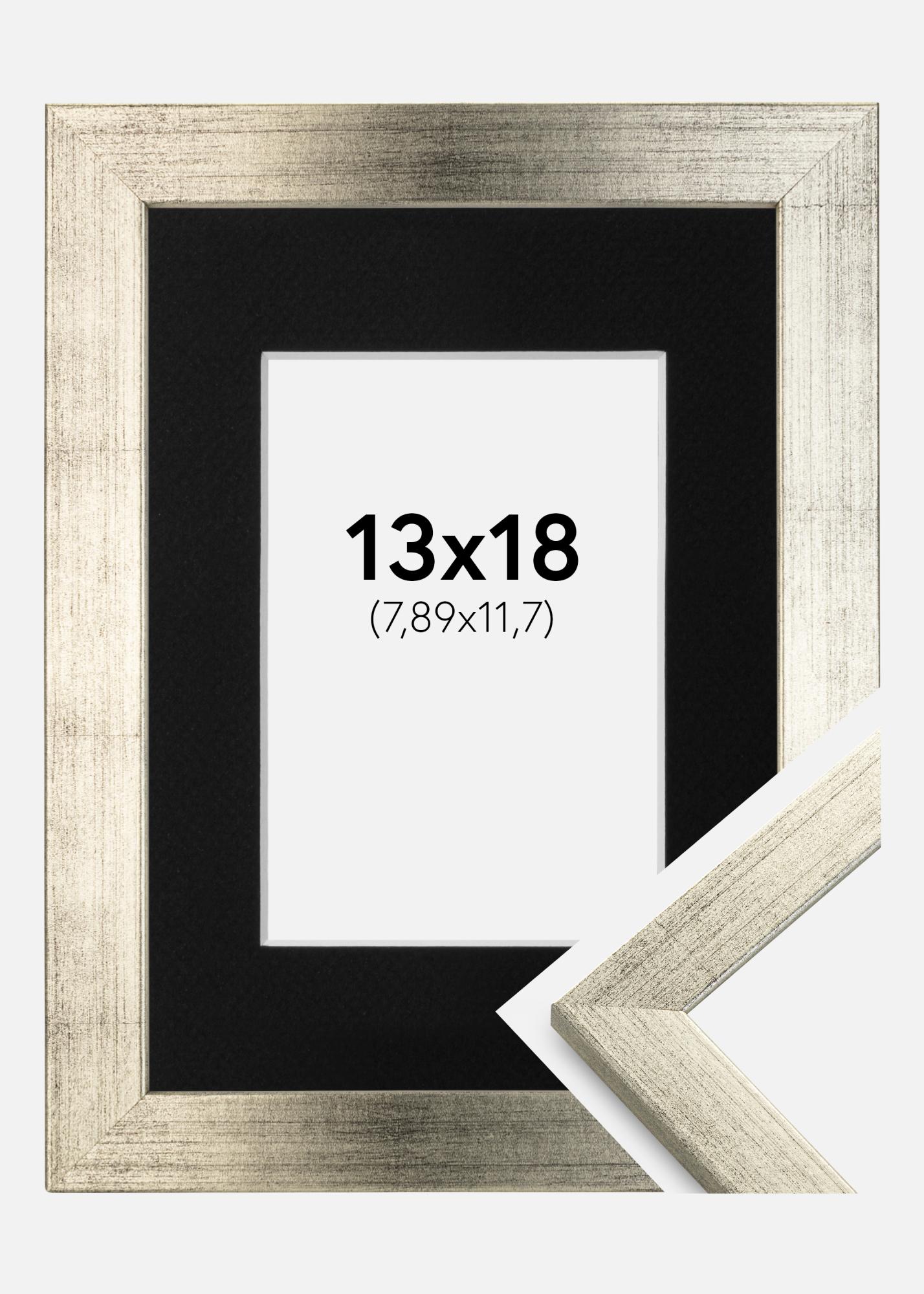 Moldura Stilren Prateado 13x18 cm - Passe-partout Preto 3,5x5 inches