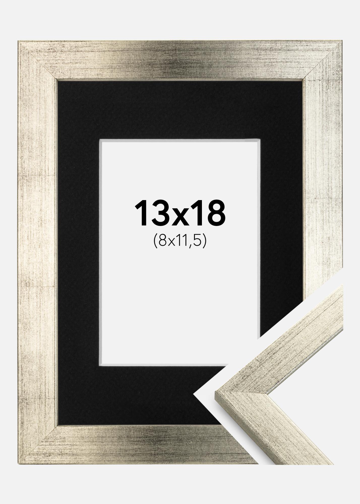 Moldura Stilren Prateado 13x18 cm - Passe-partout Preto 9x12 cm