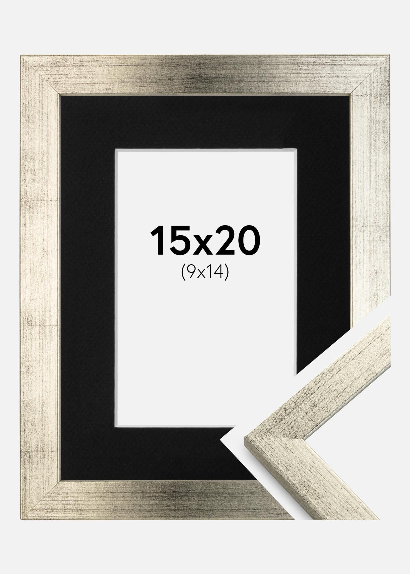 Moldura Stilren Prateado 15x20 cm - Passe-partout Preto 10x15 cm