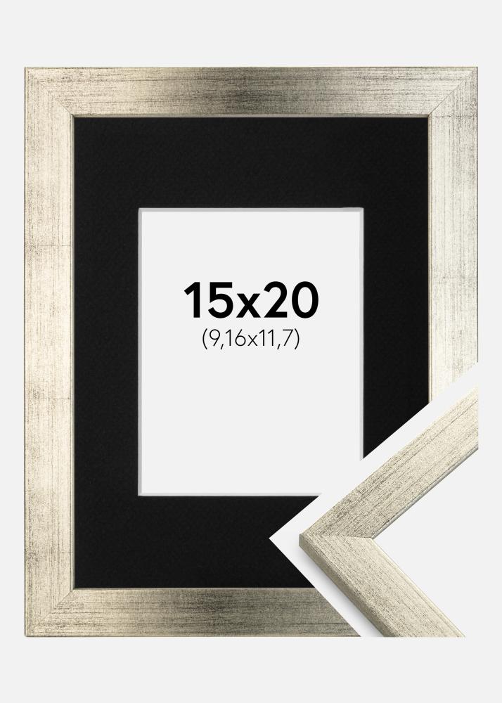 Moldura Stilren Prateado 15x20 cm - Passe-partout Preto 4x5 inches