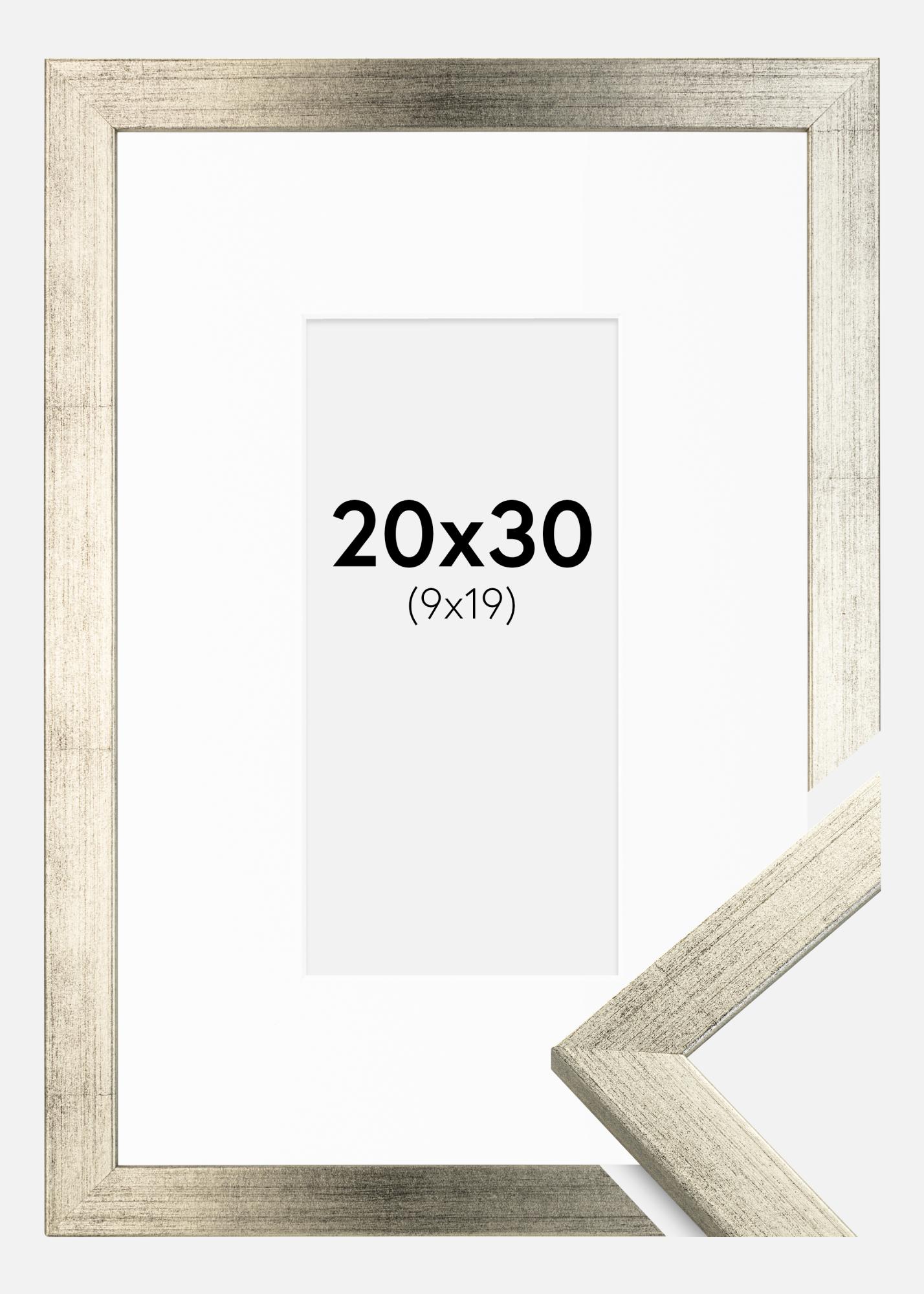 Moldura Stilren Prateado 20x30 cm - Passe-partout Branco 10x20 cm