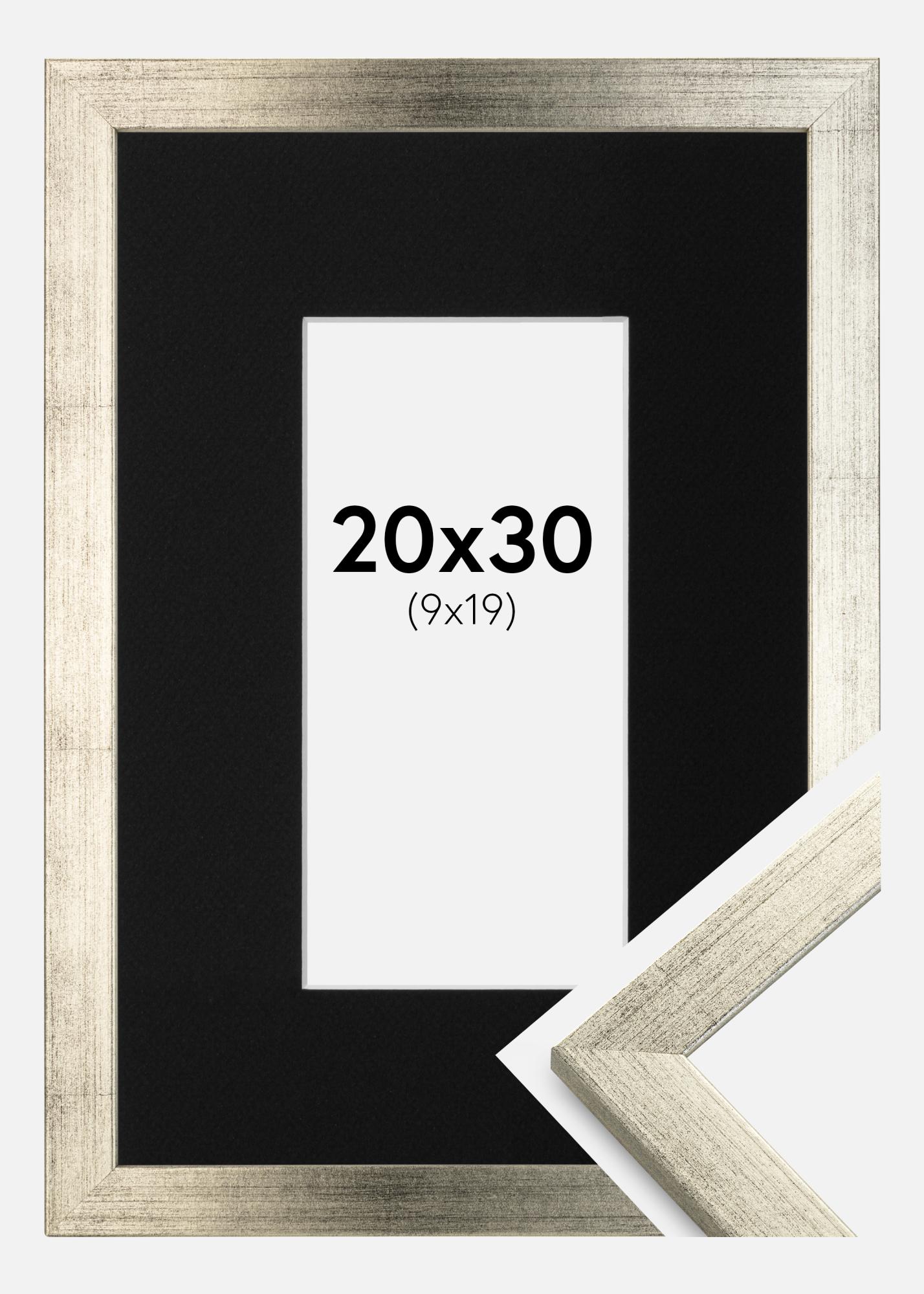 Moldura Stilren Prateado 20x30 cm - Passe-partout Preto 10x20 cm