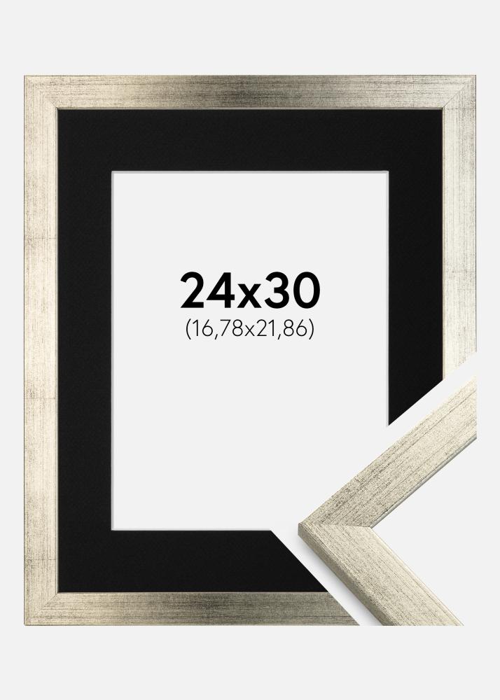 Moldura Stilren Prateado 24x30 cm - Passe-partout Preto 7x9 inches