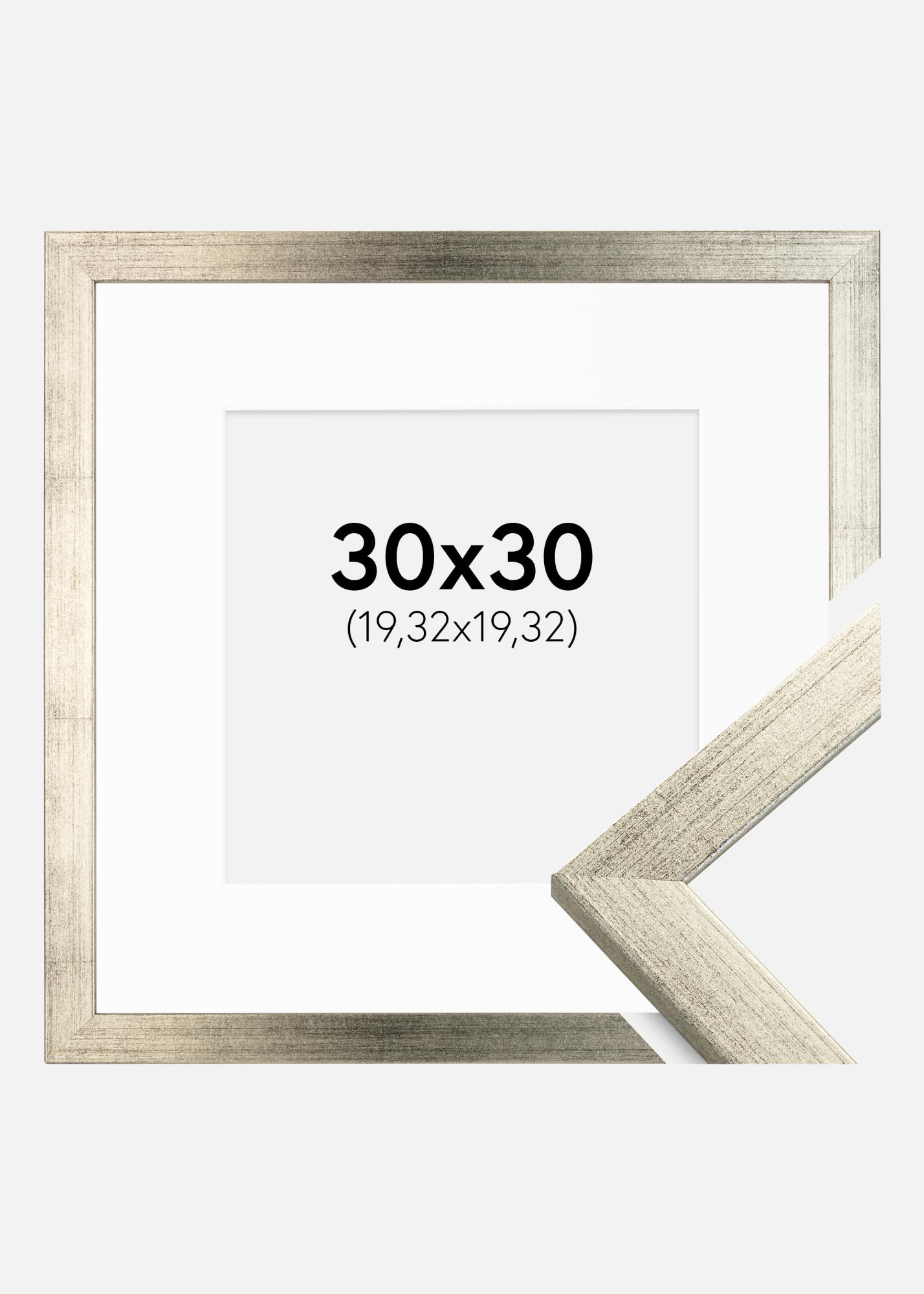 Moldura Stilren Prateado 30x30 cm - Passe-partout Branco 8x8 inches
