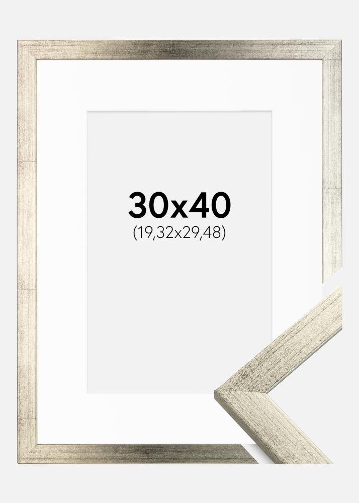 Moldura Stilren Prateado 30x40 cm - Passe-partout Branco 8x12 inches