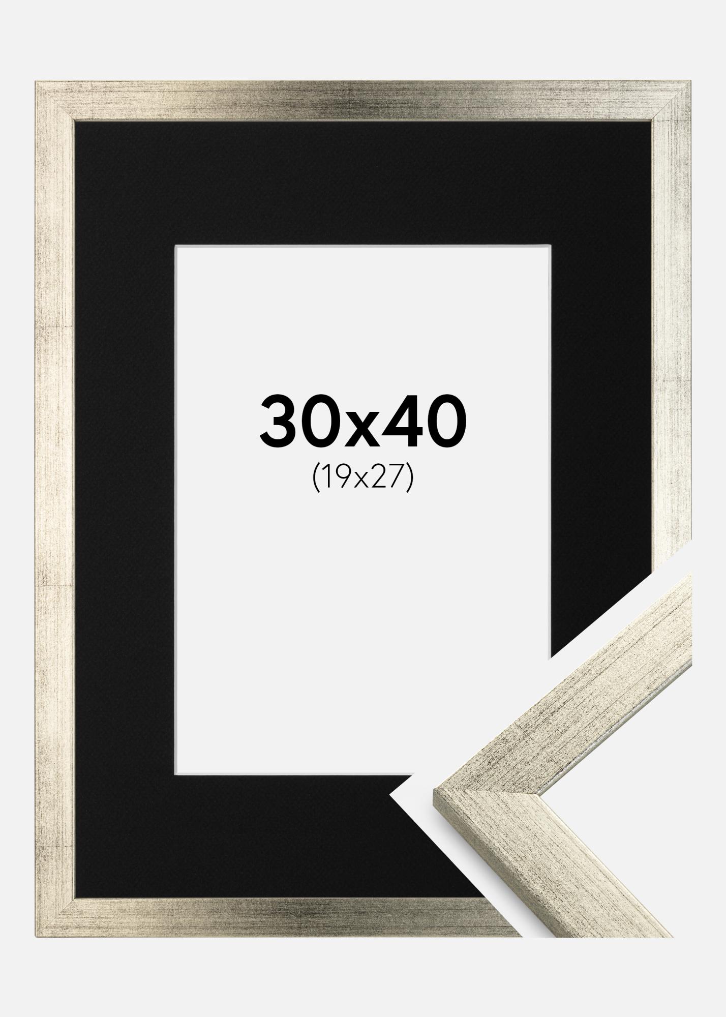 Moldura Stilren Prateado 30x40 cm - Passe-partout Preto 20x28 cm