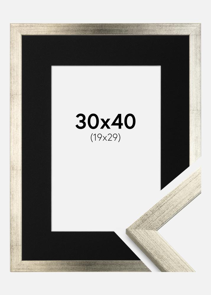 Moldura Stilren Prateado 30x40 cm - Passe-partout Preto 20x30 cm