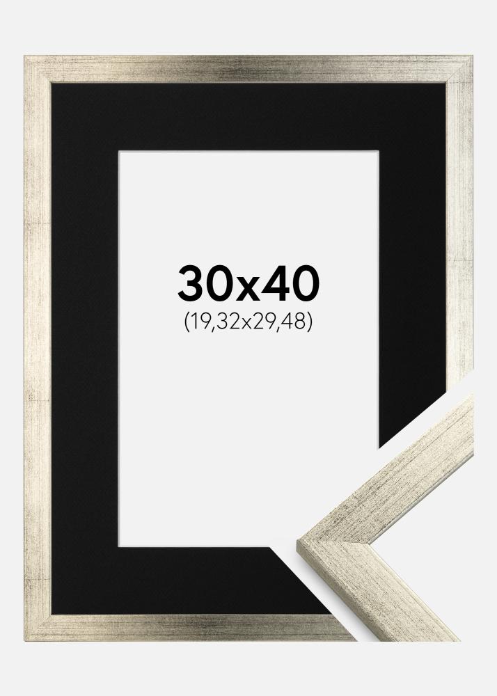 Moldura Stilren Prateado 30x40 cm - Passe-partout Preto 8x12 inches