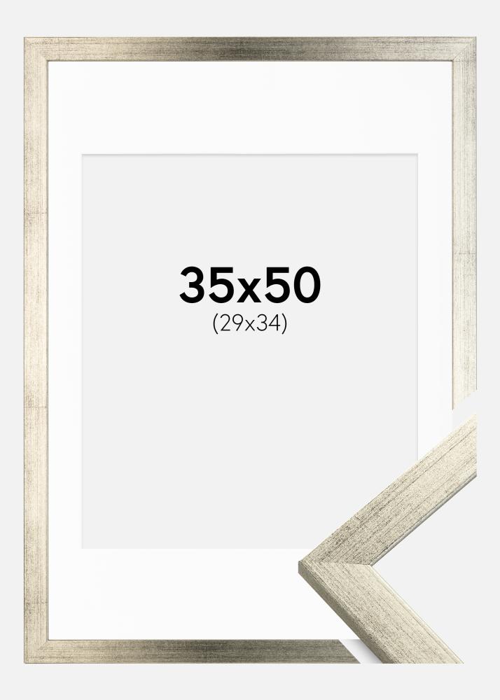 Moldura Stilren Prateado 35x50 cm - Passe-partout Branco 30x35 cm