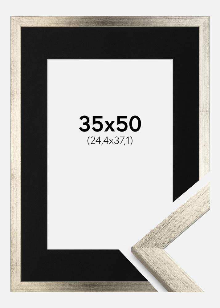 Moldura Stilren Prateado 35x50 cm - Passe-partout Preto 10x15 inches