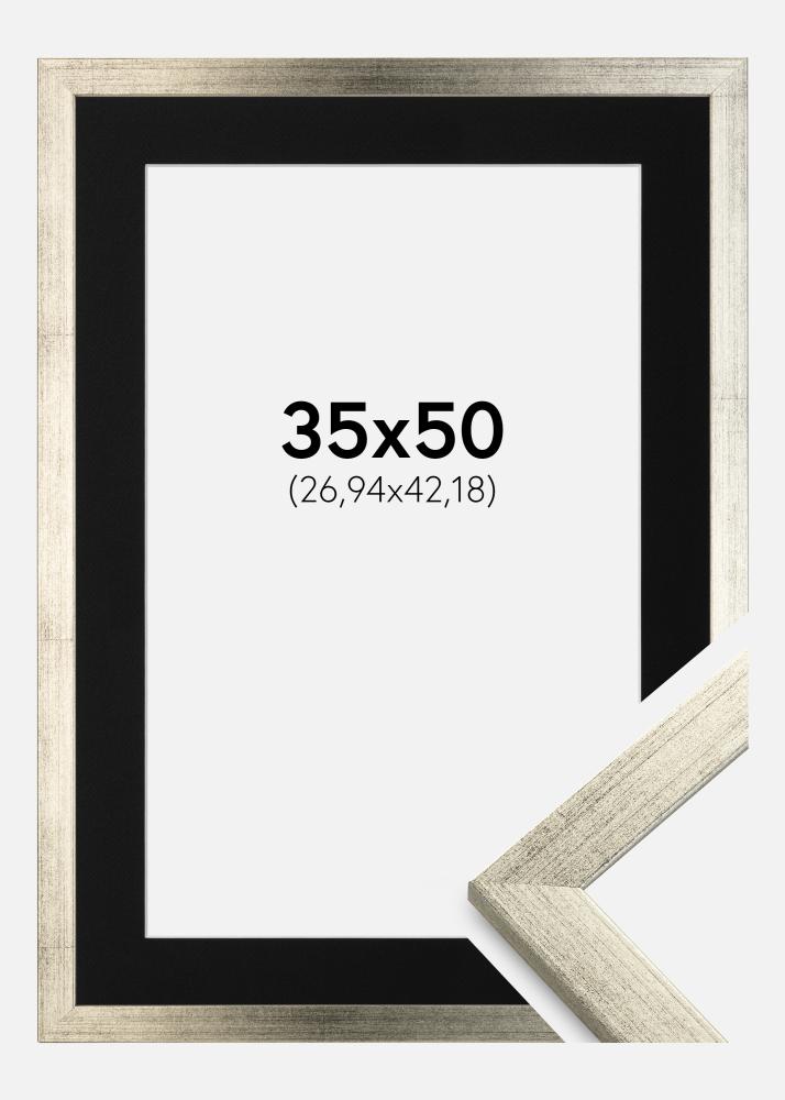 Moldura Stilren Prateado 35x50 cm - Passe-partout Preto 11x17 inches