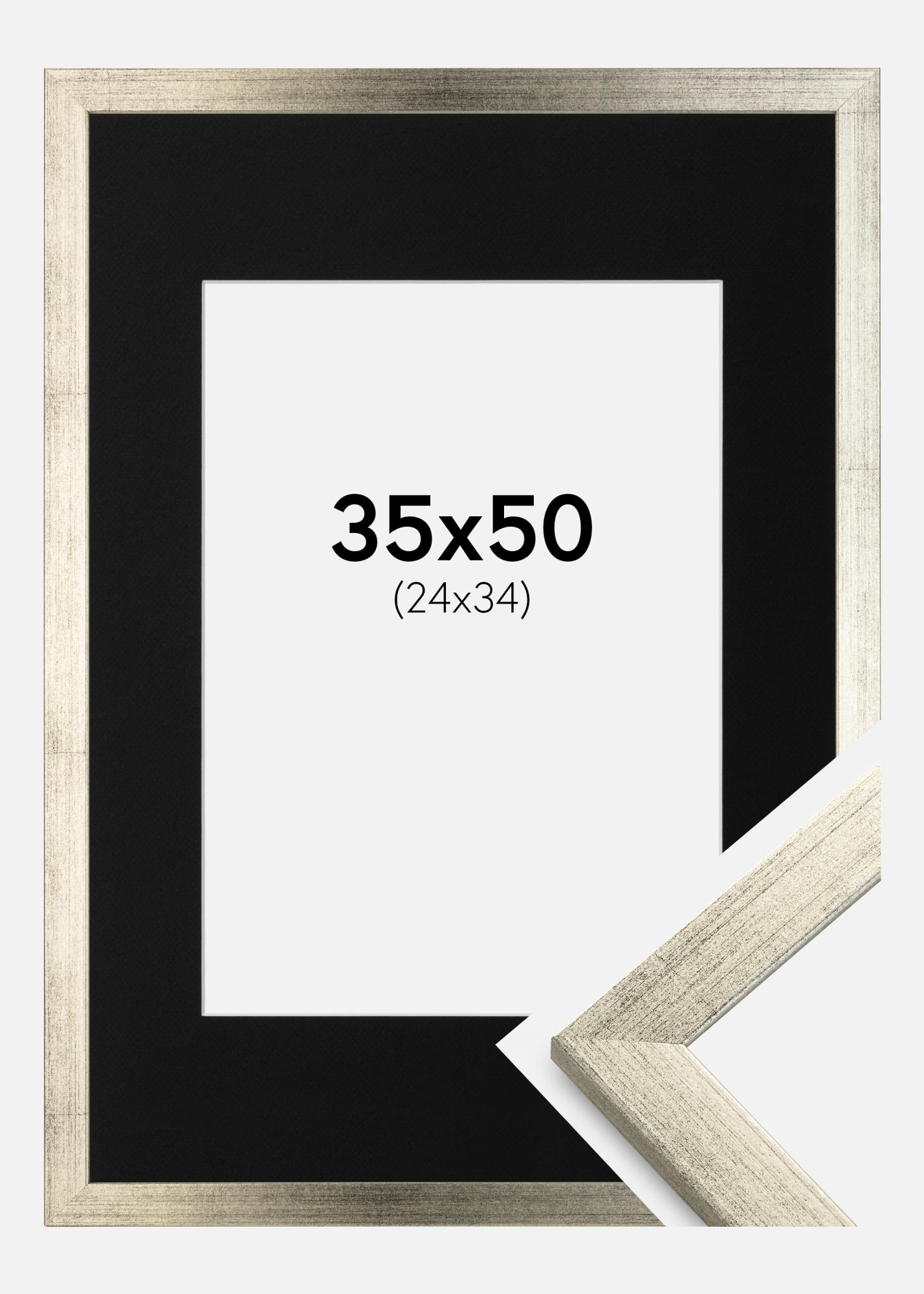 Moldura Stilren Prateado 35x50 cm - Passe-partout Preto 25x35 cm