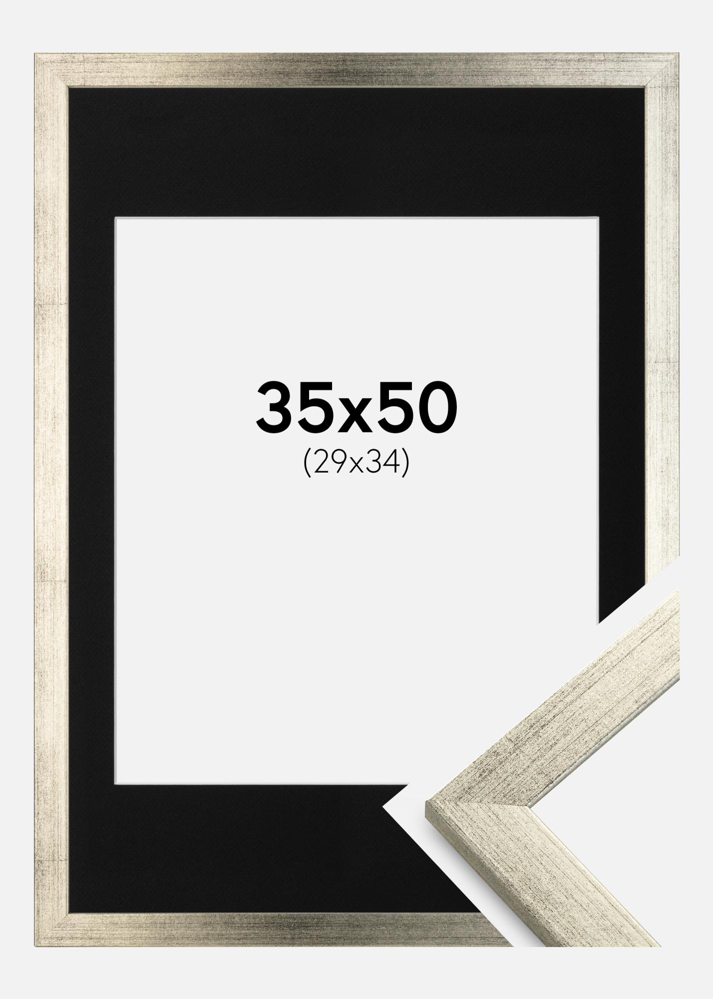 Moldura Stilren Prateado 35x50 cm - Passe-partout Preto 30x35 cm