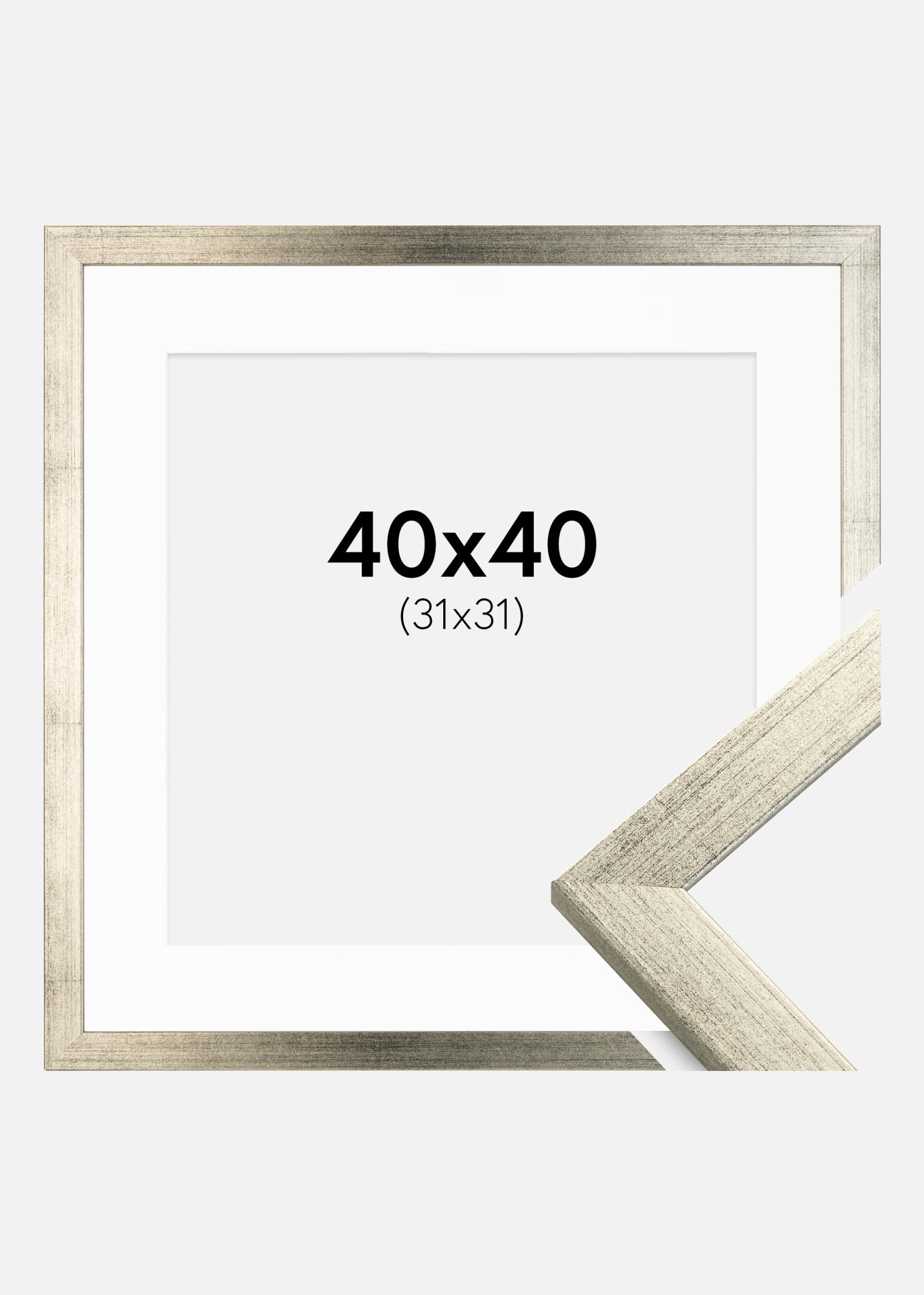 Moldura Stilren Prateado 40x40 cm - Passe-partout Branco 32x32 cm