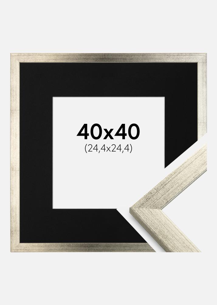 Moldura Stilren Prateado 40x40 cm - Passe-partout Preto 10x10 inches