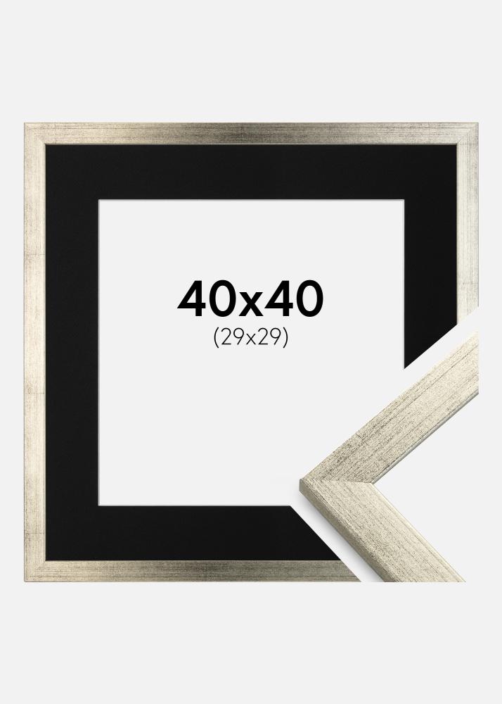 Moldura Stilren Prateado 40x40 cm - Passe-partout Preto 30x30 cm