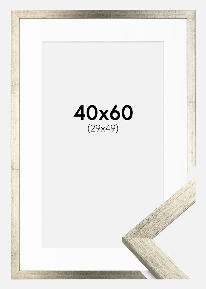 Moldura Stilren Prateado 40x60 cm - Passe-partout Branco 30x50 cm