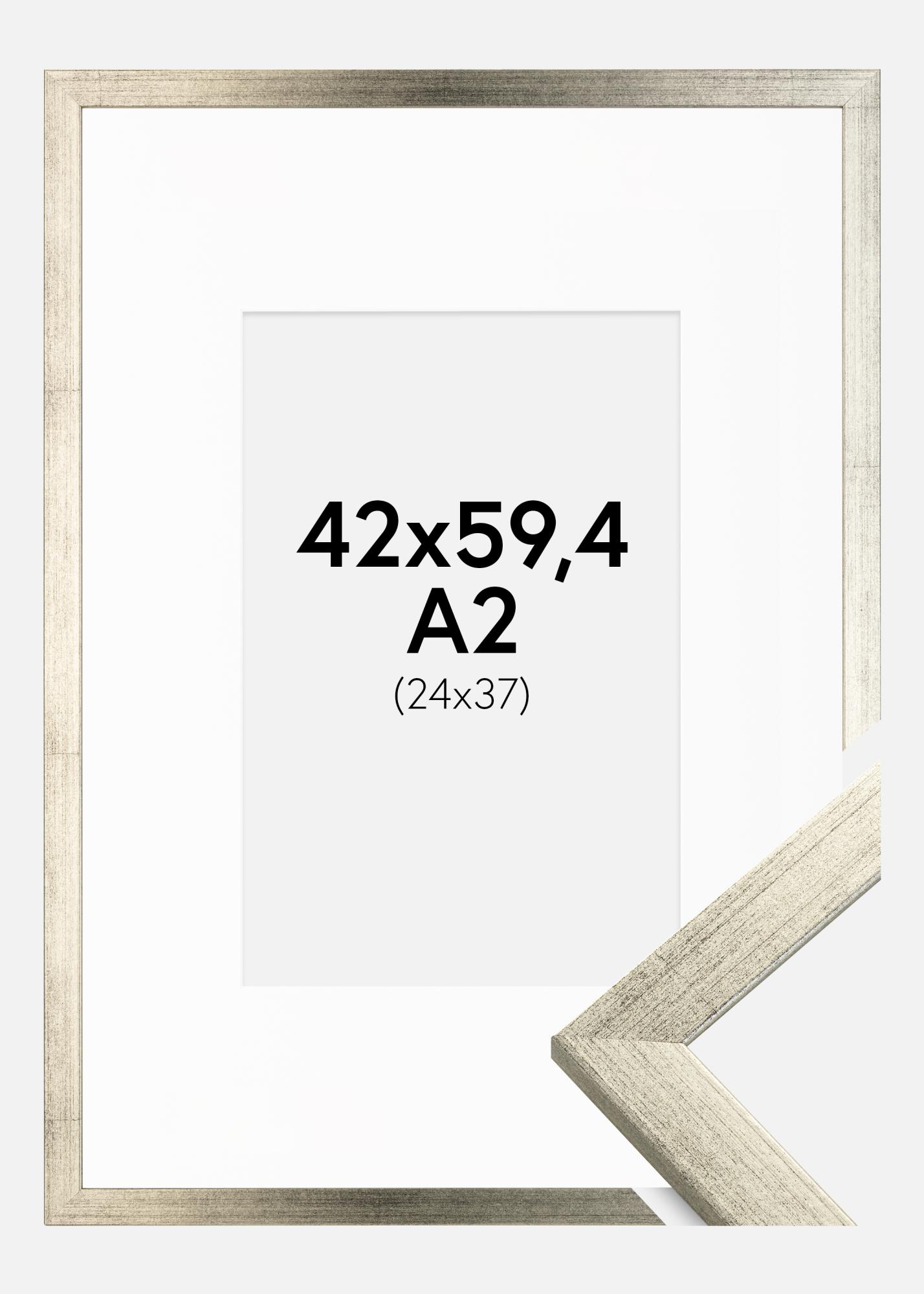 Moldura Stilren Prateado 42x59,4 cm (A2) - Passe-partout Branco 25x38 cm
