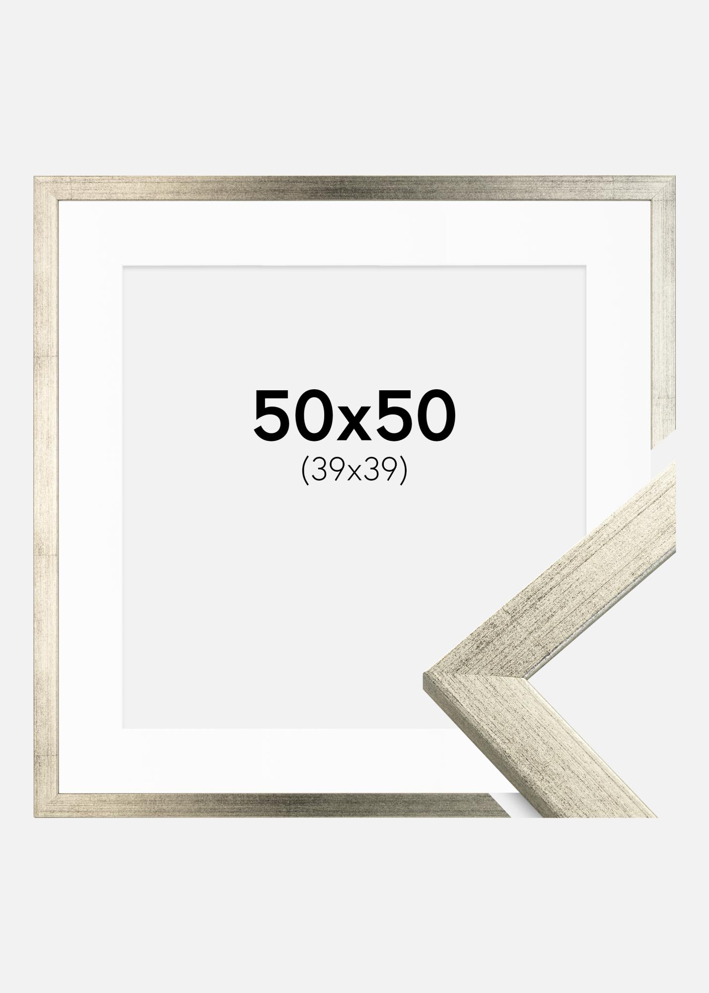 Moldura Stilren Prateado 50x50 cm - Passe-partout Branco 40x40 cm