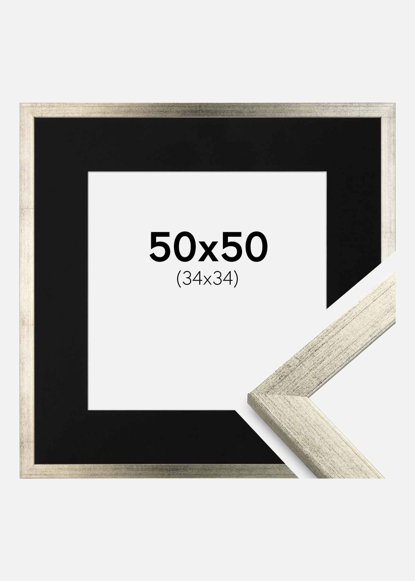 Moldura Stilren Prateado 50x50 cm - Passe-partout Preto 35x35 cm