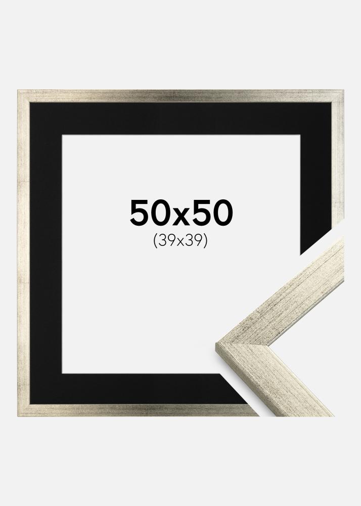 Moldura Stilren Prateado 50x50 cm - Passe-partout Preto 40x40 cm